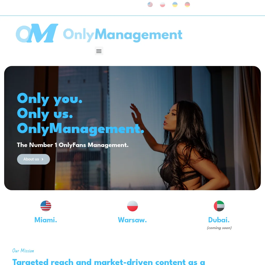 As an experienced partner in worldwide OnlyFans management, we have a clear mission: to rapidly enhance the reach and sales volume of your OnlyFans account through personalized positioning and modern marketing strategies across several channels.