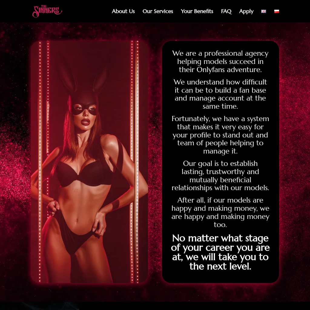 Whether you're a model looking to join The Sinners Agency or simply want to learn more about their services, we're here to help. Our comprehensive directory provides detailed information about OnlyFans agencies to help you make informed decisions.