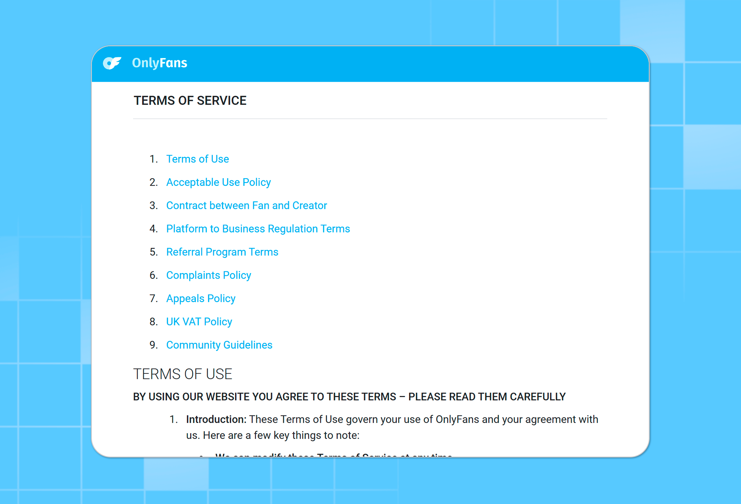 That long document that you read and agreed to? You have to follow the OnlyFans terms of service, which is a legal contract. This document tells you exactly what you can and can't do on the site. The rules can and do change, and they cover everything from the kinds of adult content that are allowed to how you can promote yourself.